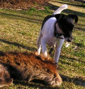 Meine Lieblingsbeschäftigung besteht darin Banya zu ärgern. Die lässt mich auch alles machen und knurrt nur, wenn es ihr tatsächlich zu bunt wird. Aufpassen muss ich nur bei Oscar. Wenn ich mich bei ihm so aufführen würde, wäre ich schon einen Kopf kürzer. Jeder kriegt halt den Respekt, den er einfordert.