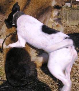 Inzwischen zeigt die Waage bei mir 2970g an. Täglich bin ich mit Oscar und Banya im Feld unterwegs. Dabei laufe ich große Strecken an der Leine, um gleich zu lernen, was "Leinenführigkeit" bedeutet. Bisher sind André und Eva sehr zufrieden mit mir, zumal ich dank leckerer Fleischwurststückchen jetzt wieder auf das "Zu miiir" wie eine Verrückte angeschossen komme. Da kann mich kein Mauseloch halten...