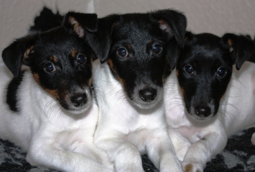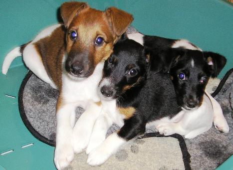 Darin und Dila sind zu foxterrier-begeisterten Menschen nach Esslingen und Passau gezogen. Tes soll eine kleine Sportlerin werden und lebt in Pfungstadt. Daya bleibt bei uns.