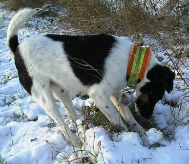 27. Oktober 2008, 17. Trächtigkeitstag: Banya geht es prächtig. Am Wochenende hat sie uns bei einer Drückjagd im Großraum Bamberg begleitet. Sie durfte mit André gute zwei Stunden (angleint) durch dichtes Unterholz krabbeln und am Ende auf ihren "heißgeliebten" Fuchs treffen.