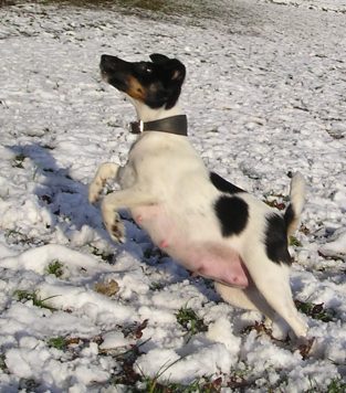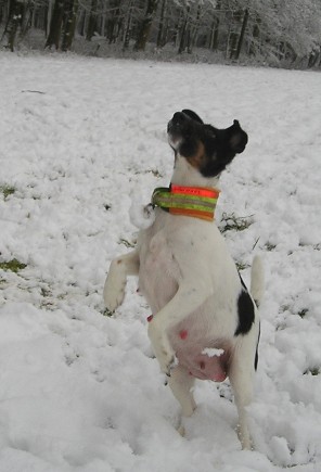 Egal "in" welchen Umständen: Foxis sind immer neugierig und jederzeit bereit ein kleines "Trick-Kommando" zu lernen. Das "Männchen" entstand heute zufällig, weil ich über ein Frolic in meiner Hand Banyas Blick nach oben lenken wollte. Sie ging auf die Hinterbeine und so hatten wir es mit 6 Übungseinheiten "drin" ;)