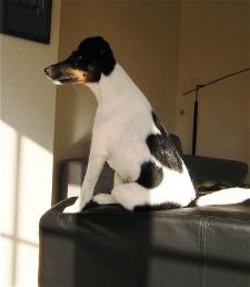 Mit Banyas Zuchtzulassung durch die Note "Sehr gut" (Vorzüglich ist die Bestnote und steht vor dem SG) auf der Europasiegerzuchtschau in Tulln/Österreich 2005 waren wir uns einig, Banya im Sommer 2006 belegen zu lassen. Banya verkörpert nicht in allen Punkten das körperliche Ideal eines Foxterriers, verfügt aber über ein einwandfreies selbstsicheres und freundliches Wesen sowie die notwendige Fitness. Ohrenhaltungen und Winkelungen sind zuchttechnisch zu korrigieren und eh Geschmacksache. Durch Zucht gefestigte Wesensmängel dagegen sind katastrophal....