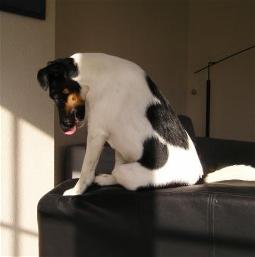 So ein Quatsch: als ob ich zu dick für die Couchlehne wäre... Aber auch ich musste meinen neuen Aussichtsposten sofort verlassen ;( Dafür warte ich jetzt immer, bis mich keiner sieht! Schließlich lerne ich ja laut André und Eva sooo schnell :0)