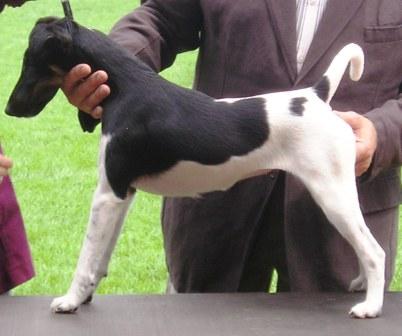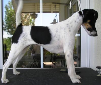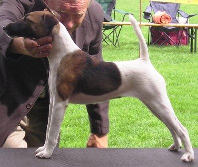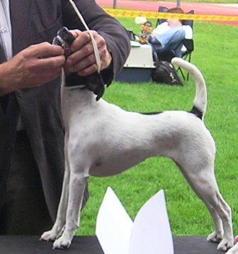 Kleine Hündin, ausreichend langer Kopf, die Augen sollten kleiner, dunkler und tiefer sein. Die Ohren können korrekt getragen werden. Ausreichend langer Hals, etwas steile Schulterlage, kurzer sehr fester Rücken. Ausreichend hoch angesetzte Rute, schmale Front, benötigt etwas mehr Brusttiefe und Knochenstärke. Ausreichend gewinkelte Hinterhand. Gangwerk hinten eng.