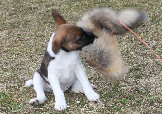 Angefangen im Februar über die Futterschleppe und das Spiel an der Reizangel im März mit Fuchslunte und Sauschwarte geht's Ende April erstmalig zur Schliefenanlage.